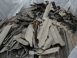 Asbest ist besonders gefährlich und muss in Asbestplattensäcken verpackt und im geschlossenen Container verladen und transportiert werden.
