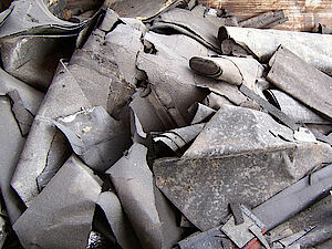 Seit Juli 2018 müssen Dachpappenabfälle zudem auf Asbestfasern, die sich im Trägermaterial oder in der Bestreuung befinden können, untersucht werden. Wenn Dachpappenabfälle mit krebserzeugenden Fasern (Asbest, KMF) verunreinigt sind, ist eine thermische Entsorgung nicht möglich. Daraus folgt, dass der Abfallerzeuger vor der Entsorgung eine Beprobung mit nachfolgender Analytik auf karzinogene Fasern veranlassen muss. Nachweislich asbesthaltige Dachpappenabfälle können nicht vorbehandelt bzw. verbrannt werden. Diese müssen entweder oberirdisch auf einer Deponie der Klasse III oder aber in einer Untertagedeponie abgelagert werden, was entsprechend höhere Entsorgungskosten zur Folge hat.