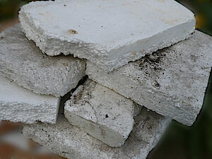 - Dämmplatten aus geschäumten Polystyrol / Styropor für die Dämmung von Fassaden, Zwischendecken, Kellerräumen u. ä. mit geringen Anhaftungen von Kleber, Farbe, Putz oder Baugewebe